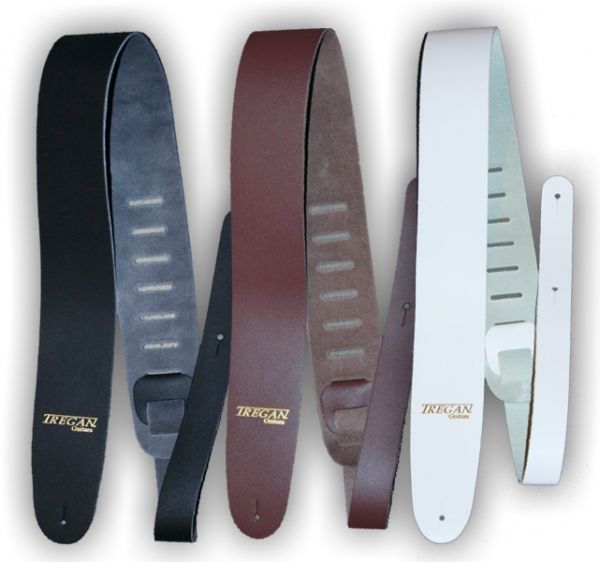 This quality 100% leather guitar strap is 2-1/2 inches wide to better distribute the weight of the guitar, for a more comfortable feel and less stress on your shoulder (compared to thinner 1-1/2" and 2" straps). The length is adjustable from 40 to 51 inches. Available in Black, Brown and White.